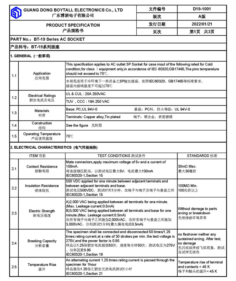 C8八(bā)字插座係列